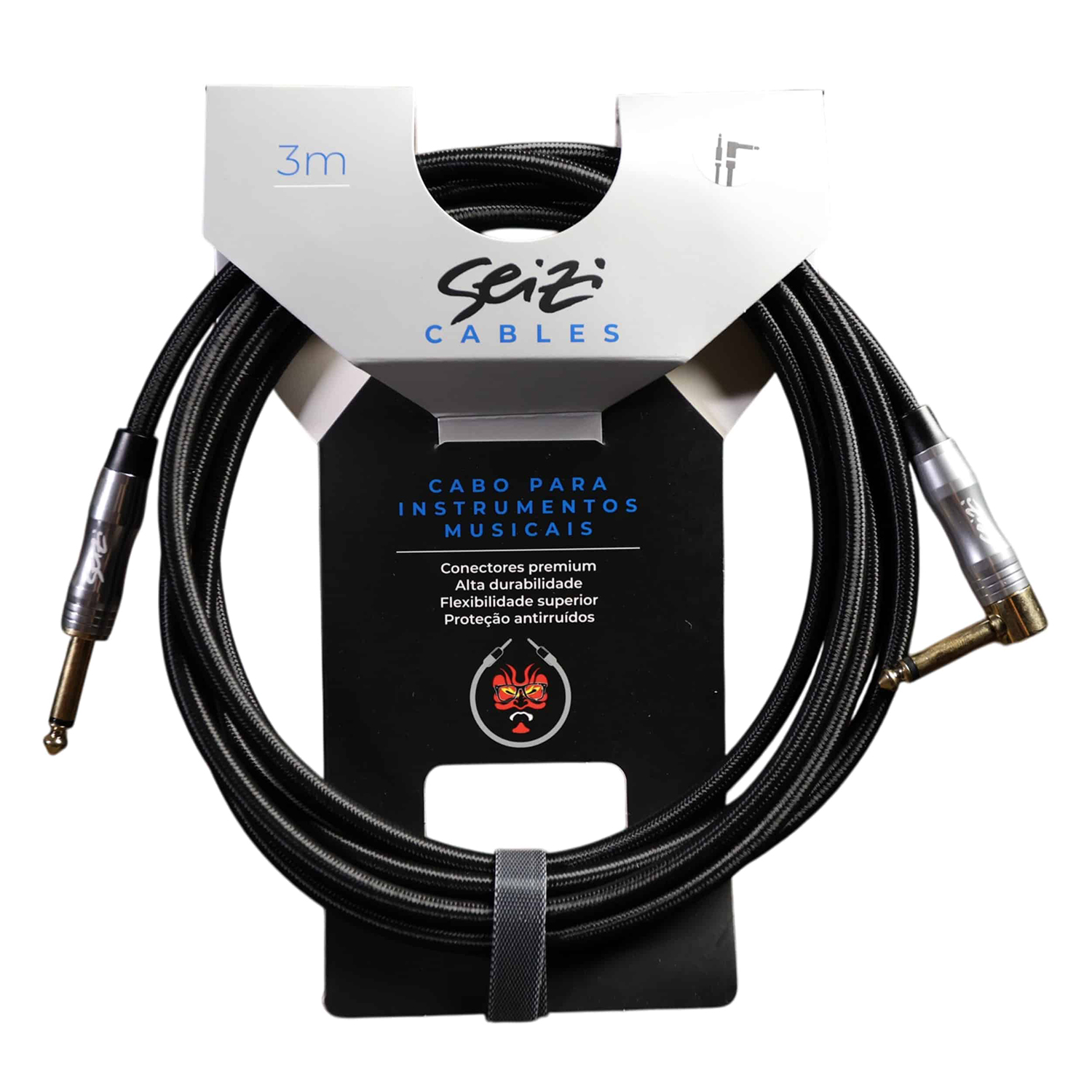 Cabo Seizi Para Guitarra Violão Baixo P10L 3m Têxtil Preto