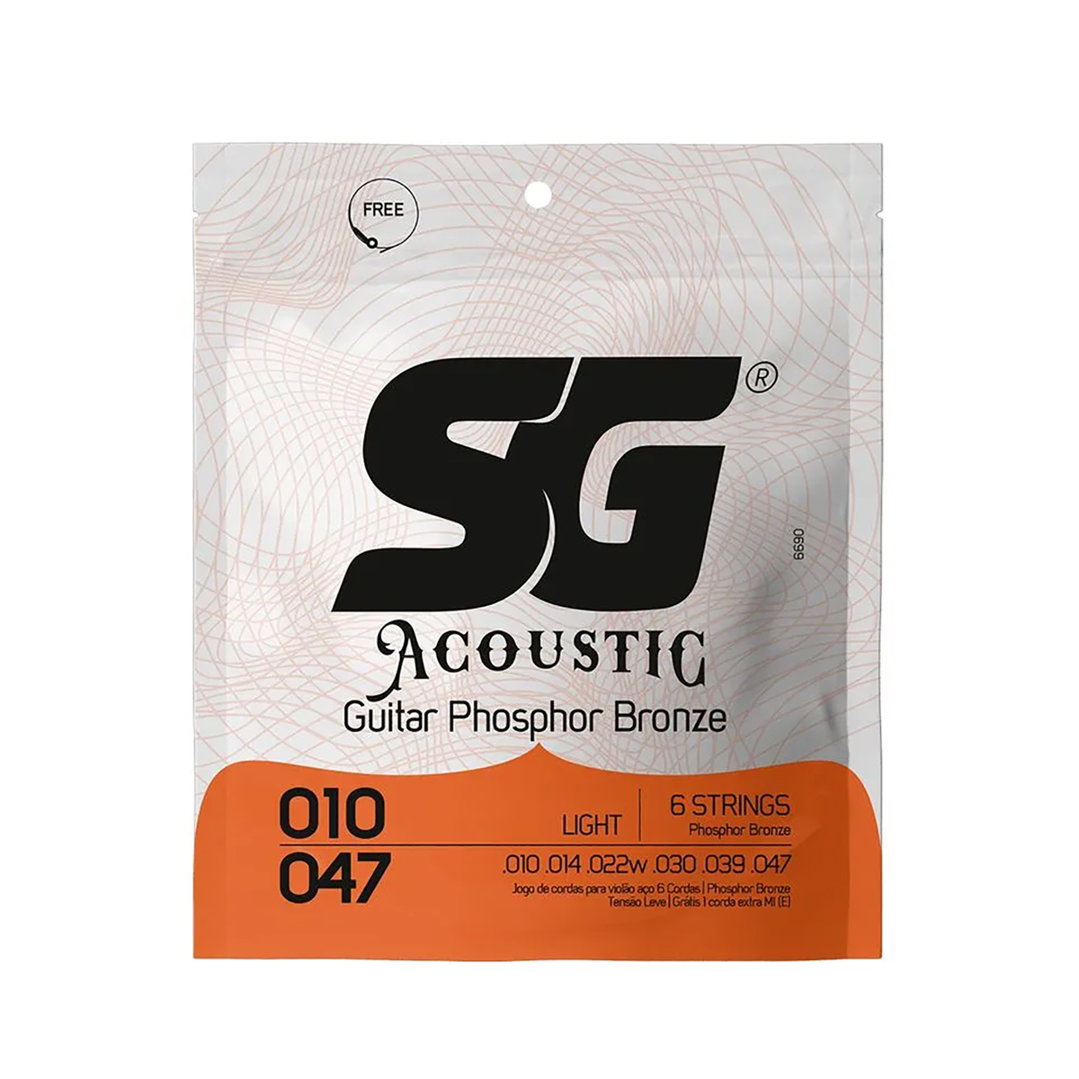 A Corda SG 010 é recomendada tanto para iniciantes como para músicos profissionais, com a qualidade de uma marca reconhecida pelos músicos de todo Brasil. Possui cordas primas em aço estanhado cilíndrico e bordões com revestimento de bronze fosforoso e núcleo hexagonal de aço estanhado. Além dessas características, essas cordas Phosphor Bronze são indicadas para uso em escala com comprimento de 25 e 1/2 (648mm).