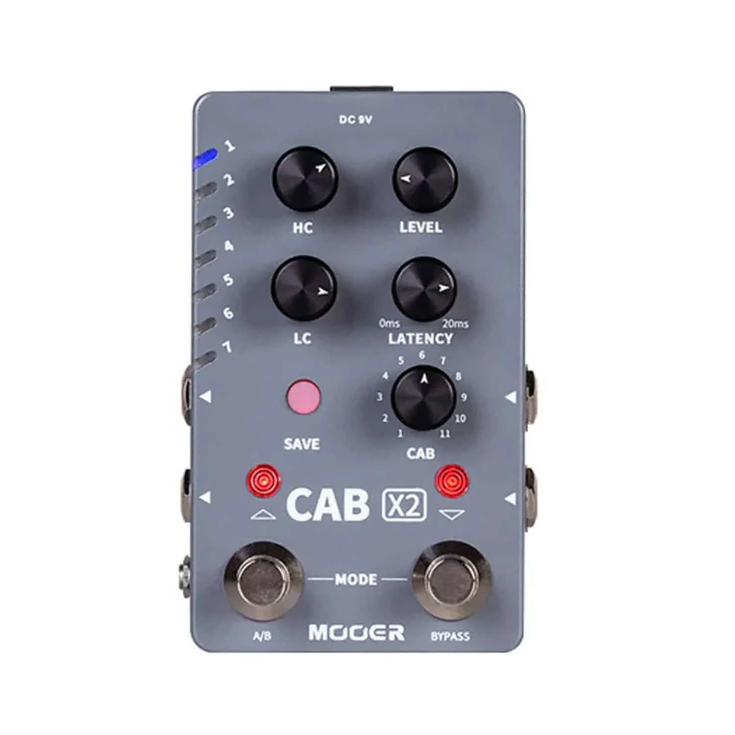 O Mooer Cab X2 é um pedal simulador de gabinete estéreo com suporte para arquivos IR (Impulse Response), ideal para emular diferentes configurações de caixas de guitarra. Oferece 14 slots para carregamento de IRs personalizados via USB, função de pré-edição com software dedicado e arquitetura de alta resolução para performance em linha com realismo sonoro.