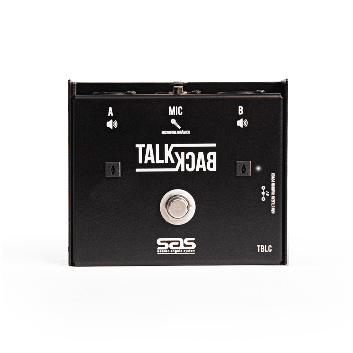 O pedal TALKBACK da SAS veio para facilitar a comunicação no palco entre músicos e técnicos de áudio. No modelo TBLC, o footswitch possui trava, logo, a saída selecionada ficará sempre ativa. Ao pressionar uma vez ele mudará de canal e assim sucessivamente. Ou seja, não é necessário mantê-lo pressionado.
