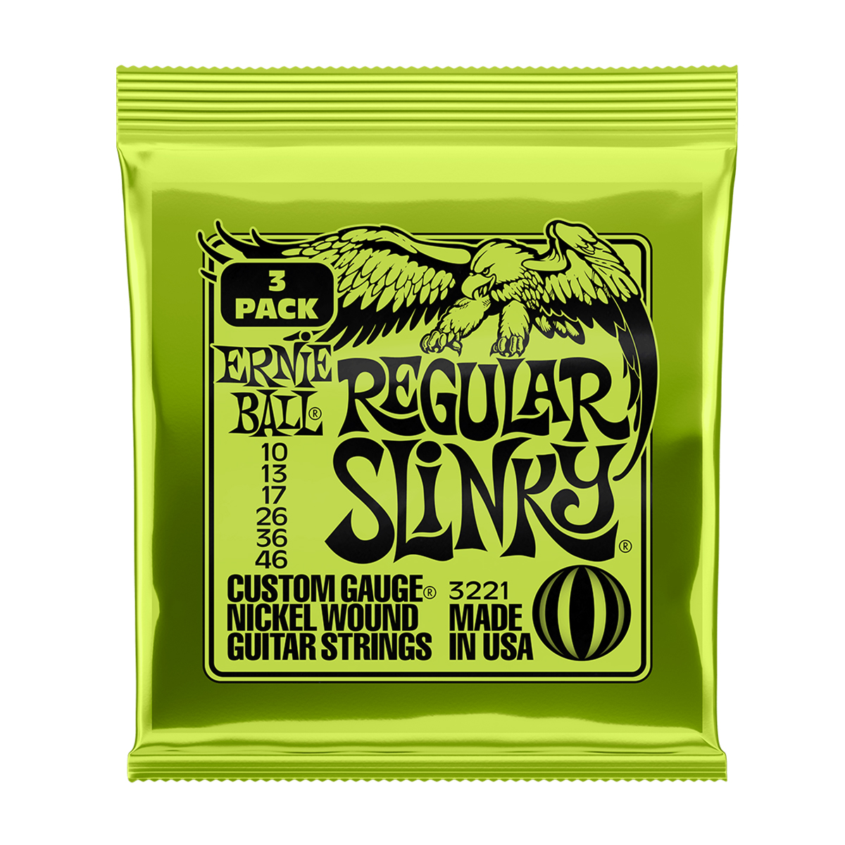 Kit 3 Encordoamentos Guitarra Ernie Ball Regular Slinky 010